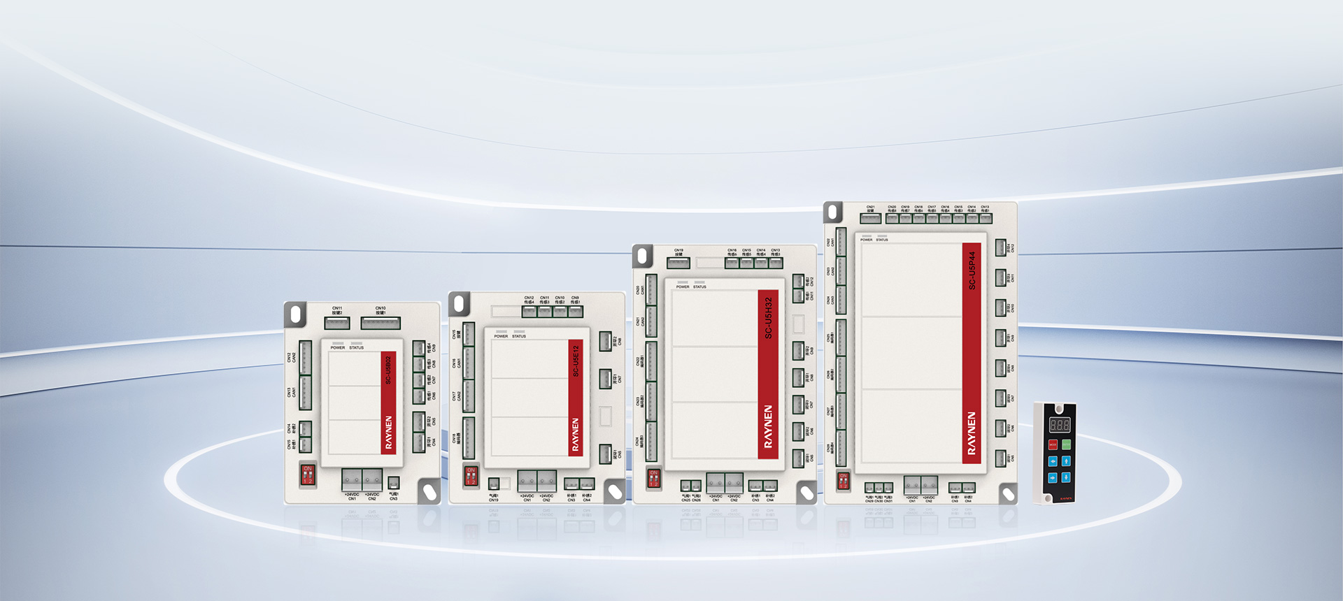 该系列产品是可定制的控制装置。通过 n+m 组合方式,实现形形色色不同机构驱动和实现特种的刺绣工艺。其中 n+m 的含义如下: